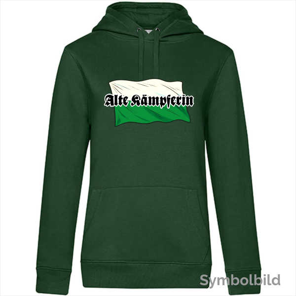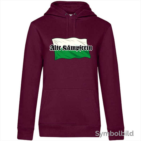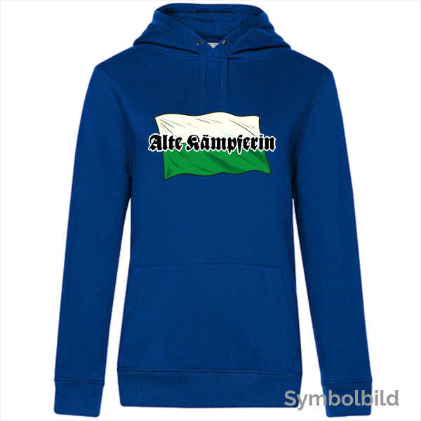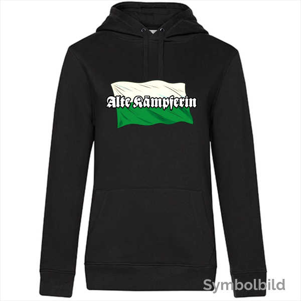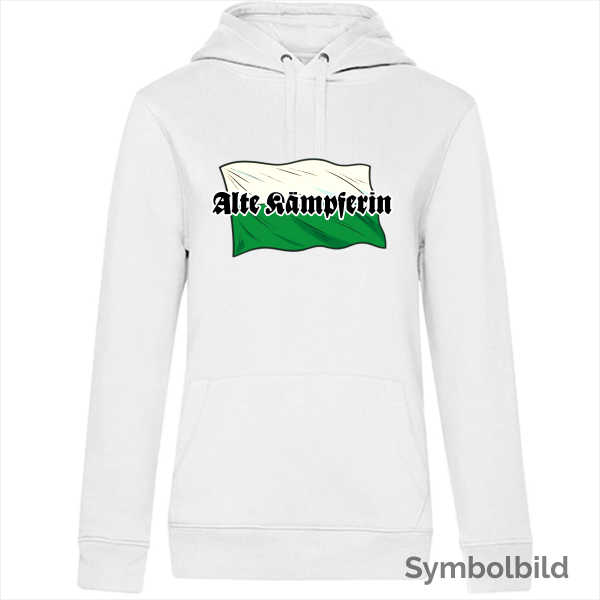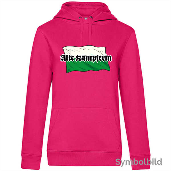 Qualitativ hochwertiges T-Shirt für Damen aus 100 % Baumwolle mit dem Motiv “Alte Kämpferin” und Sachsen-Fahne im Hintergrund auf der Vorderseite in verschiedenen Größen und Farben.